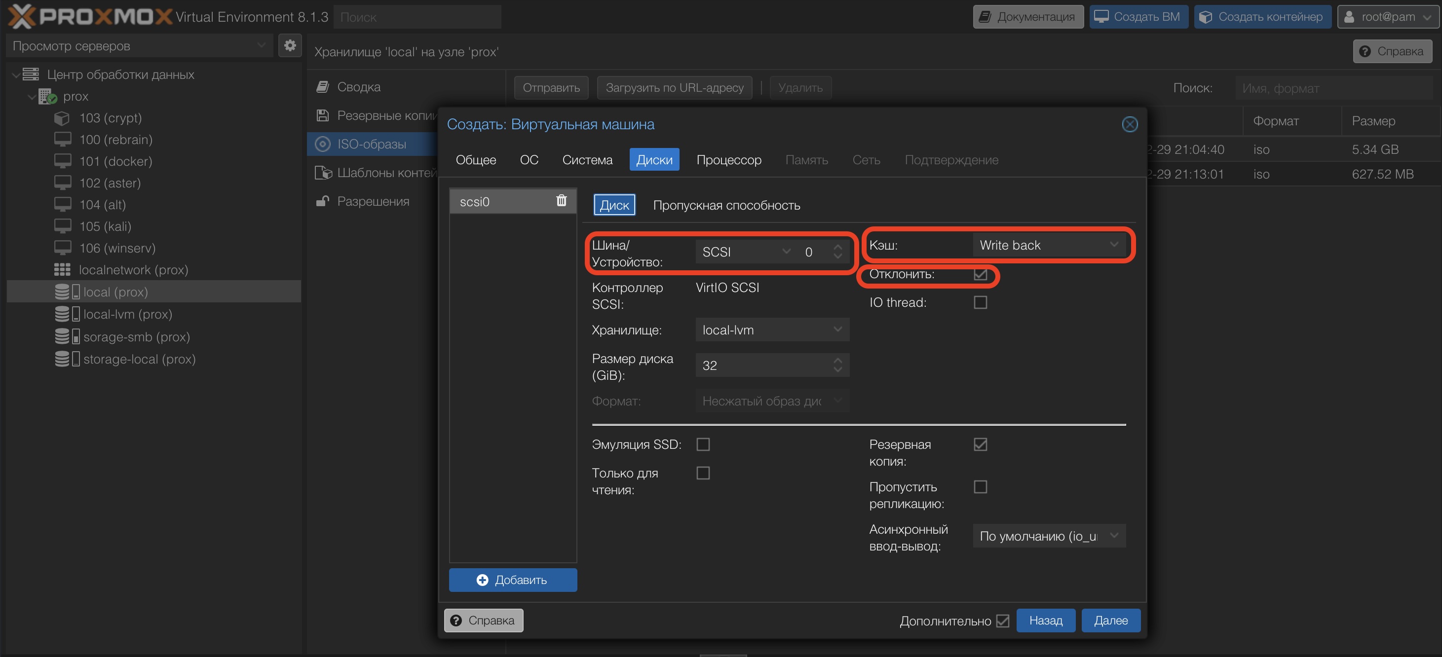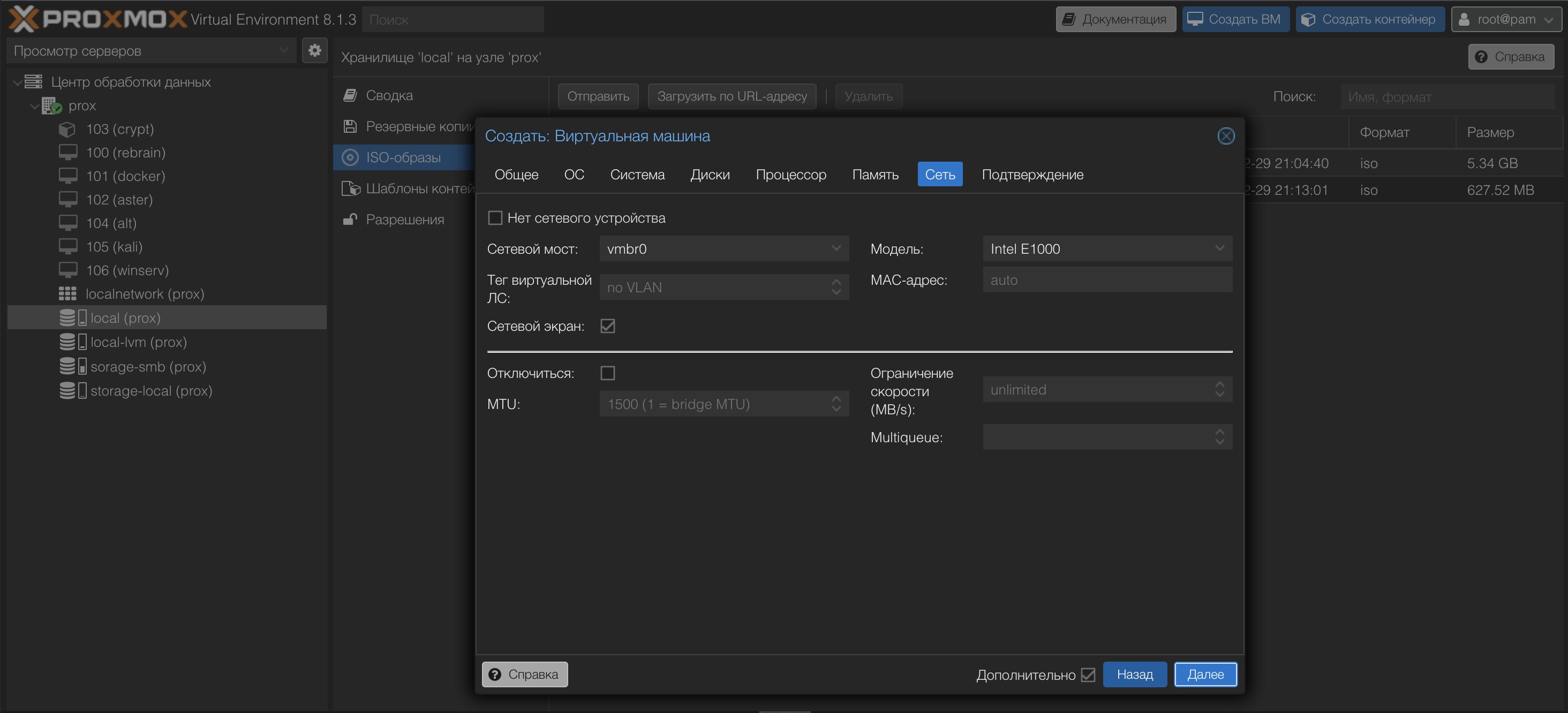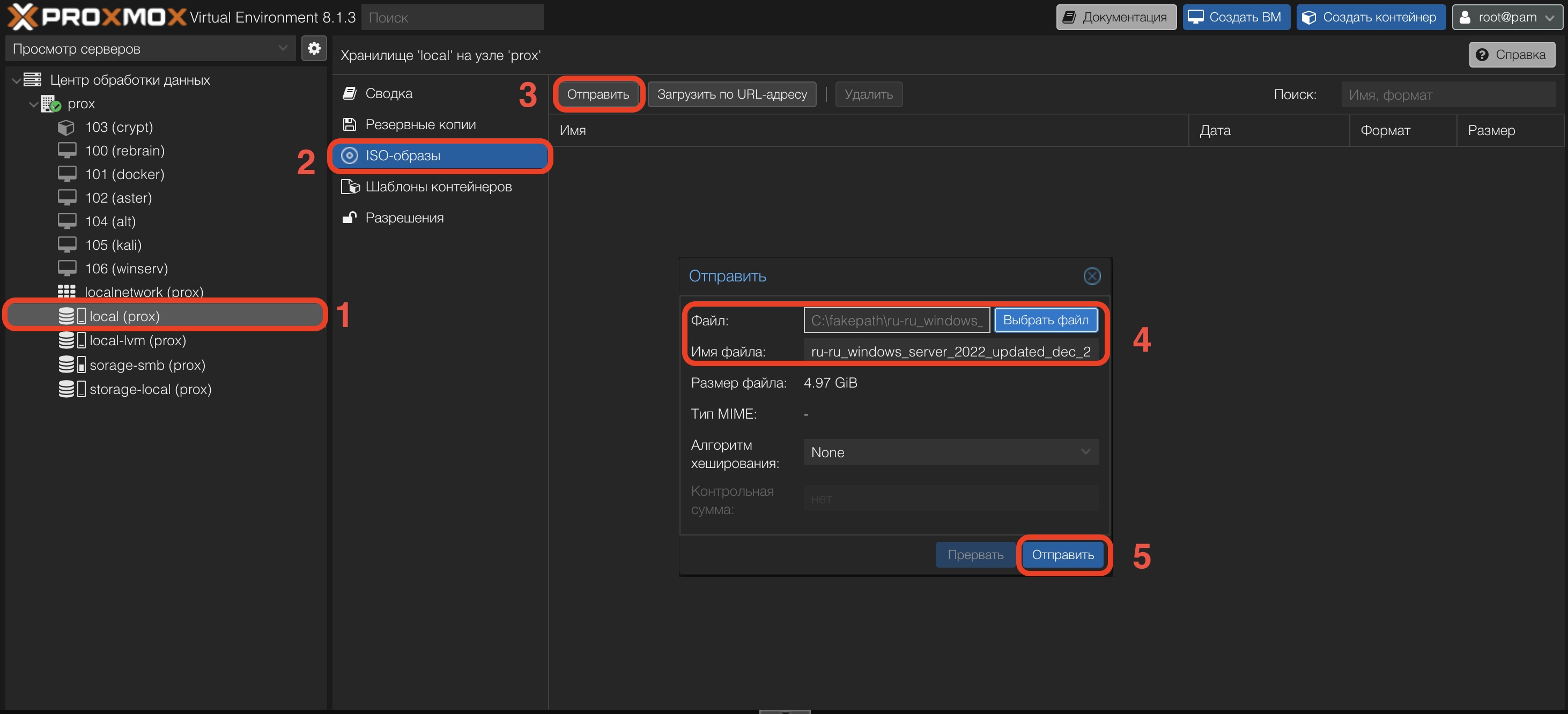 - Теперь нам нужно полученные на предыдущем шаге образы загрузить в локальное хранилище Proxmox.