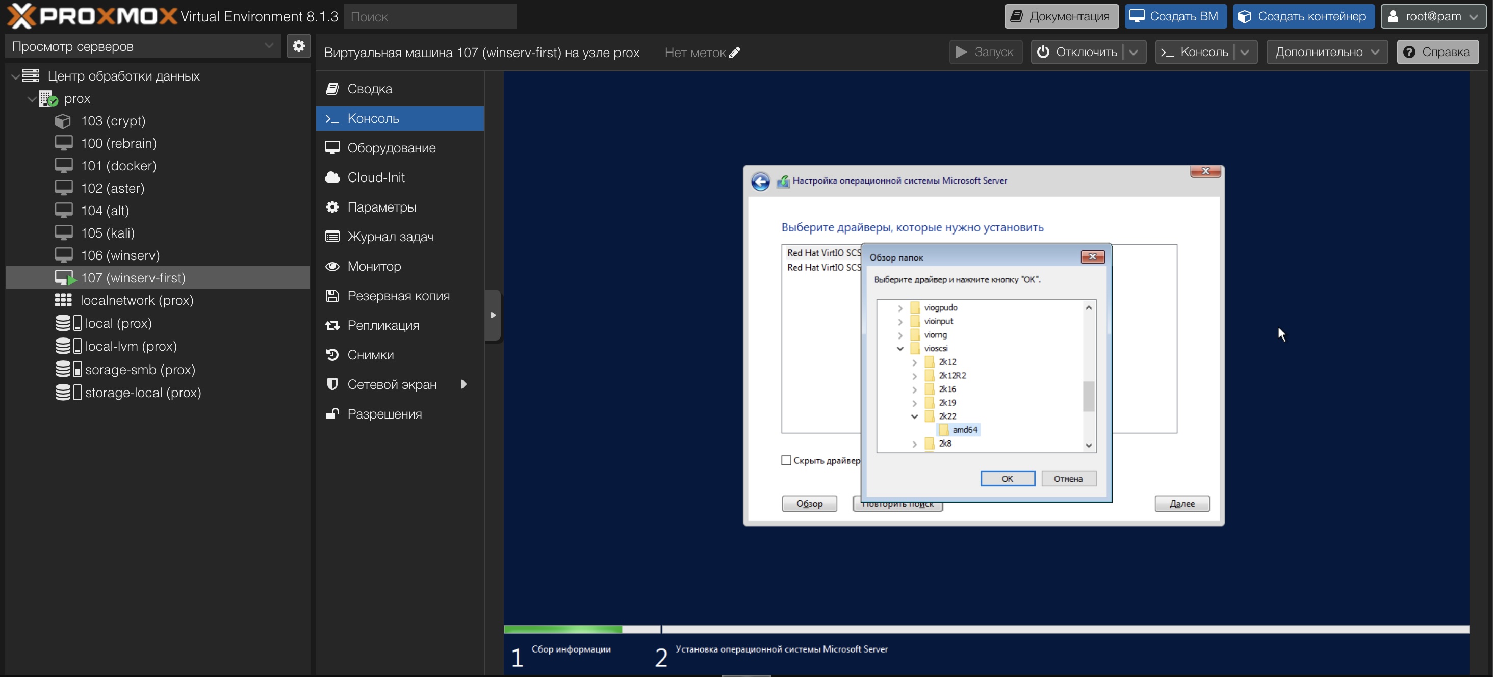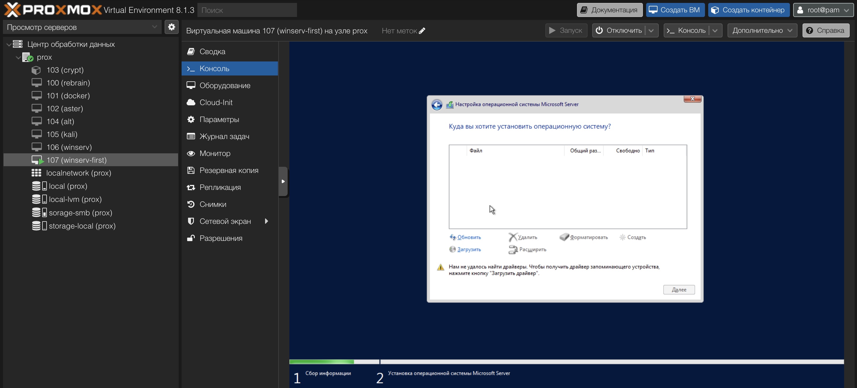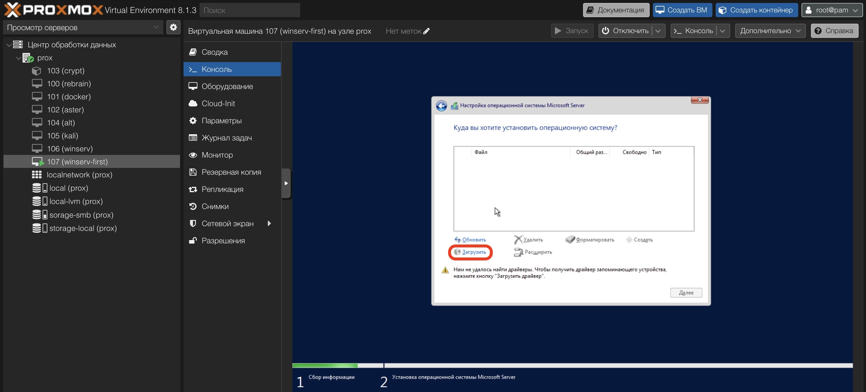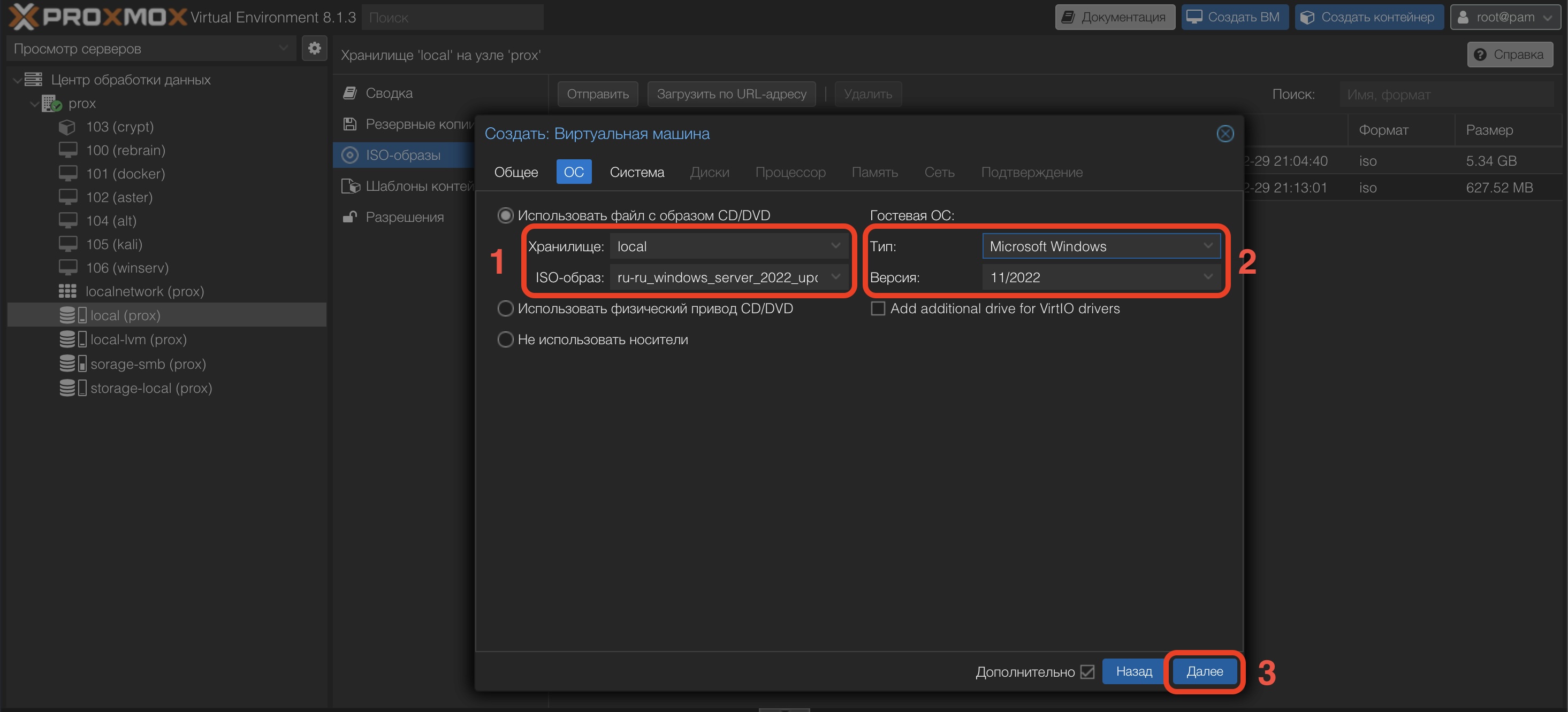 Установка Windows Server 2022 на виртуальную машину Proxmox