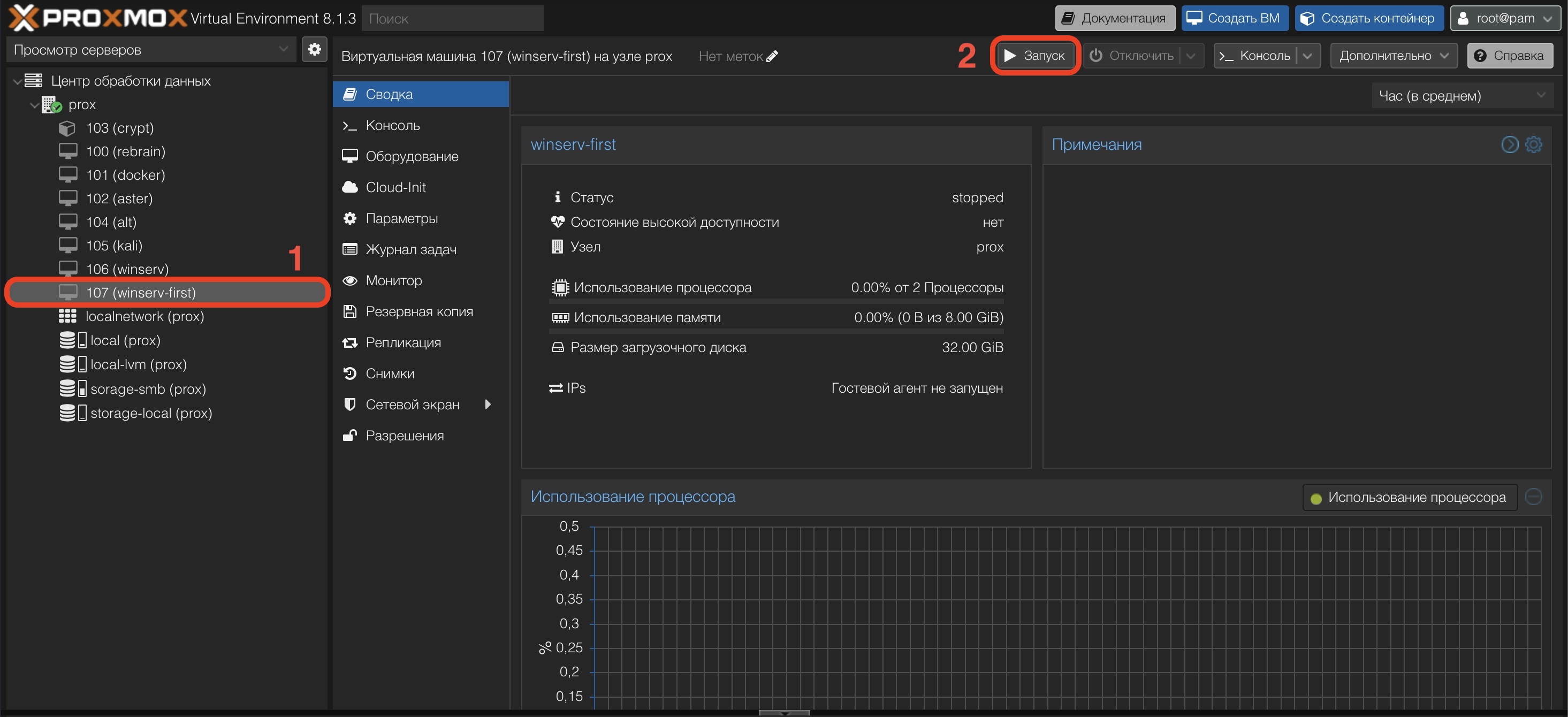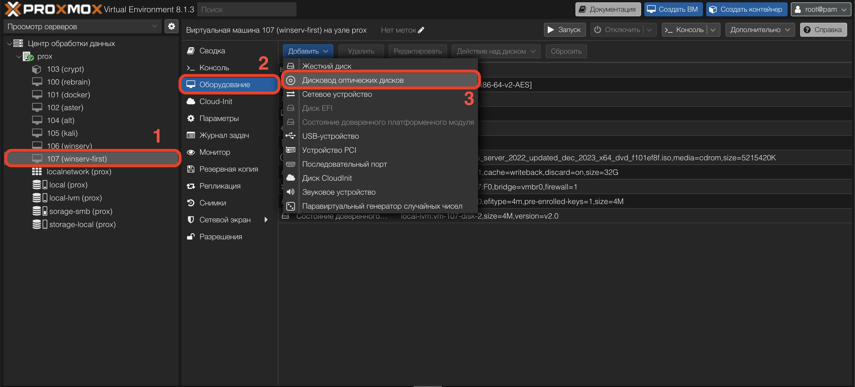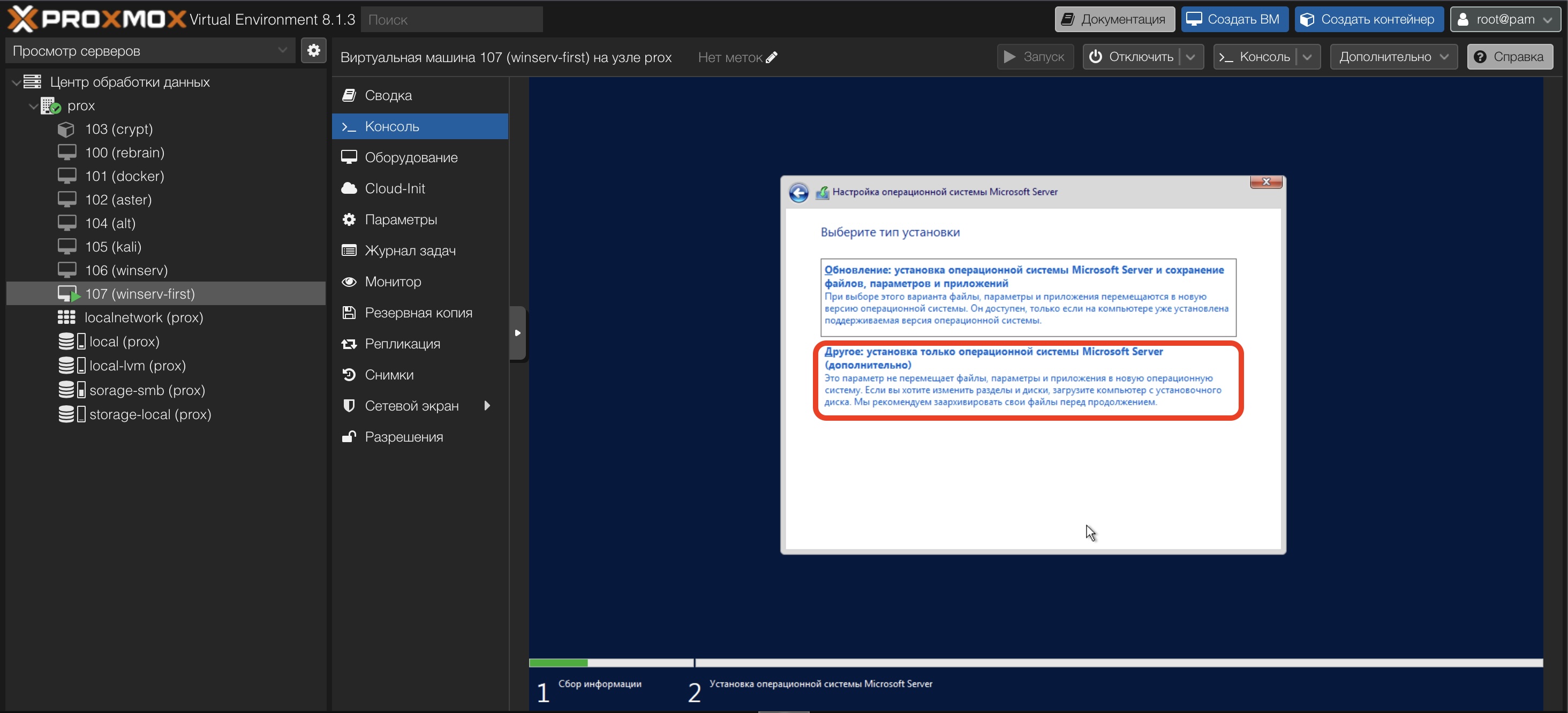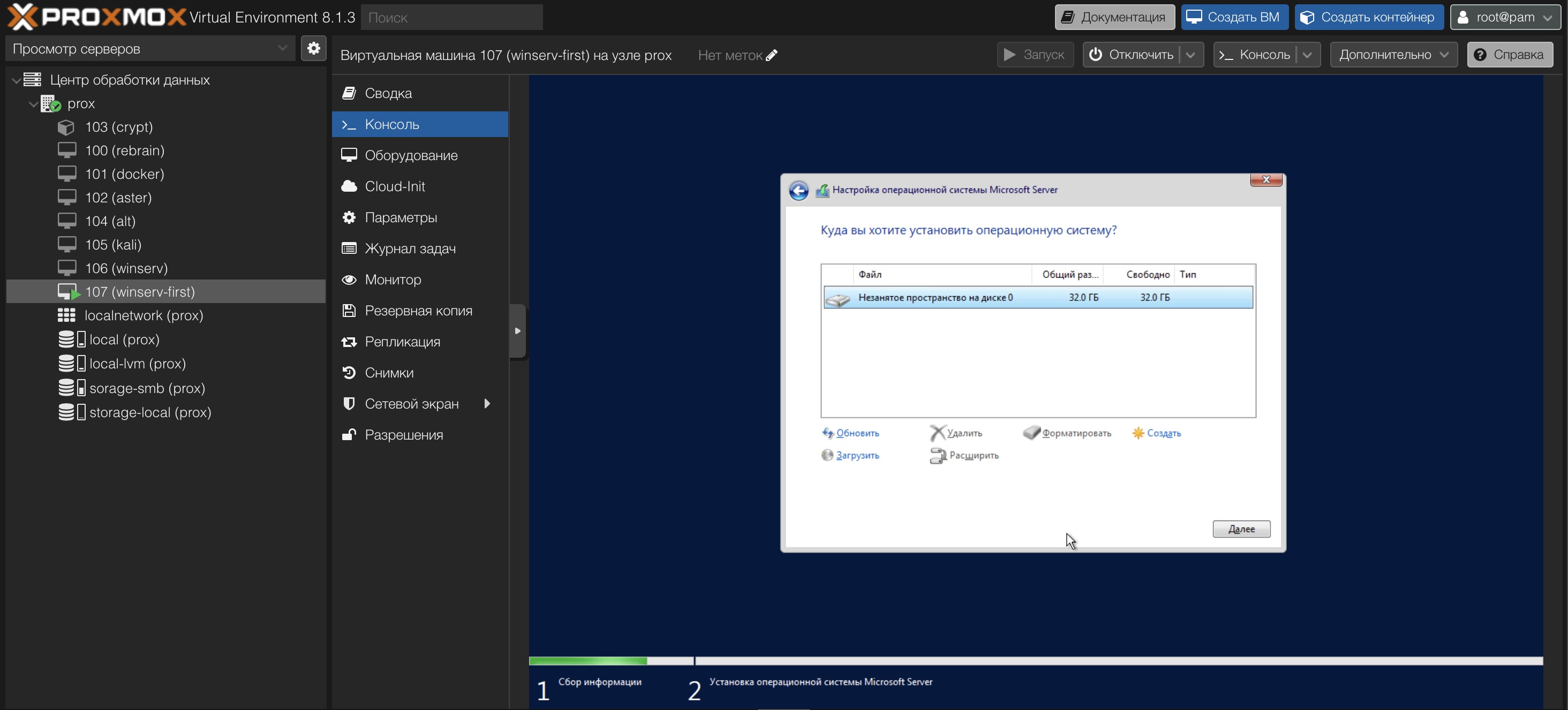 Установка Windows Server 2022 на виртуальную машину Proxmox