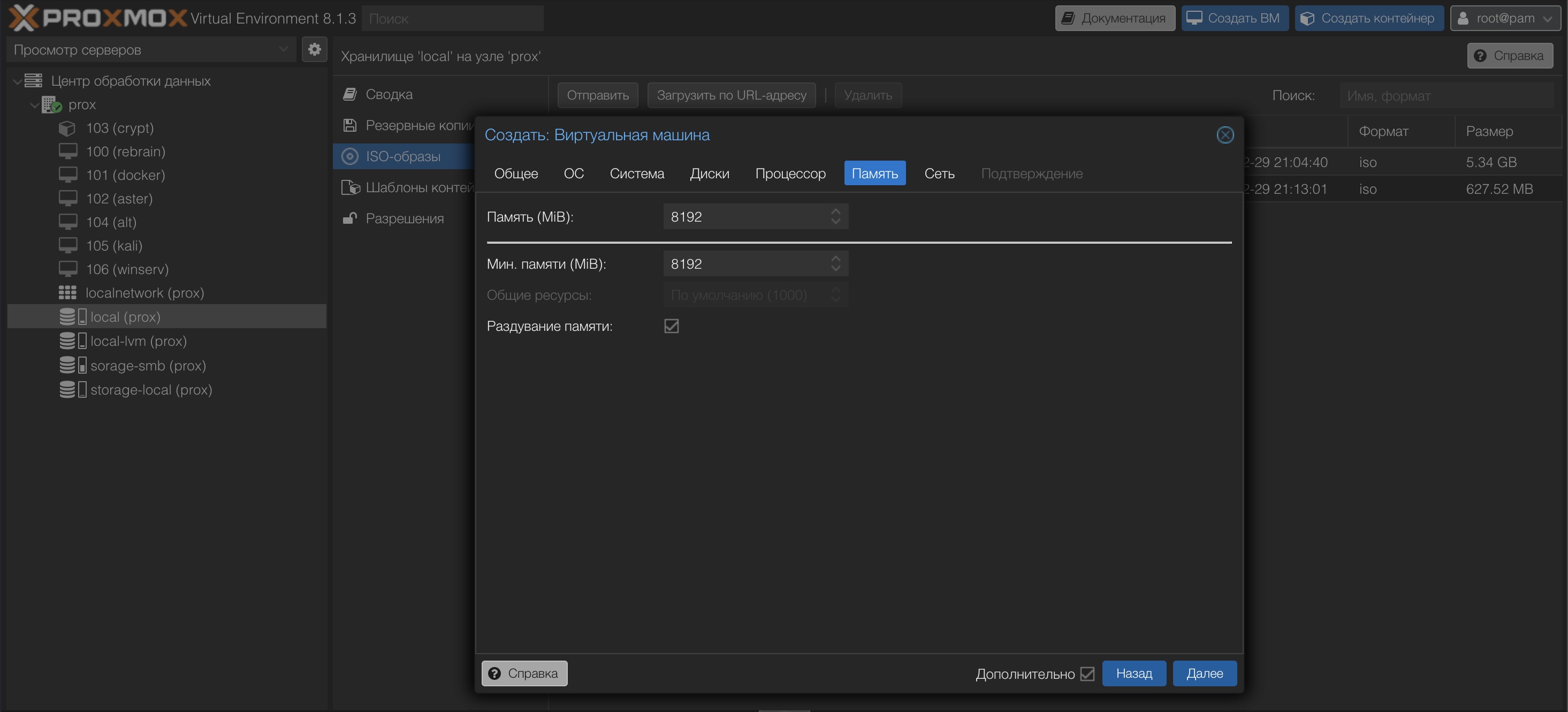 Здесь опять же выставляем значение согласно вашим потребностям и возможностям вашего гипервизора: