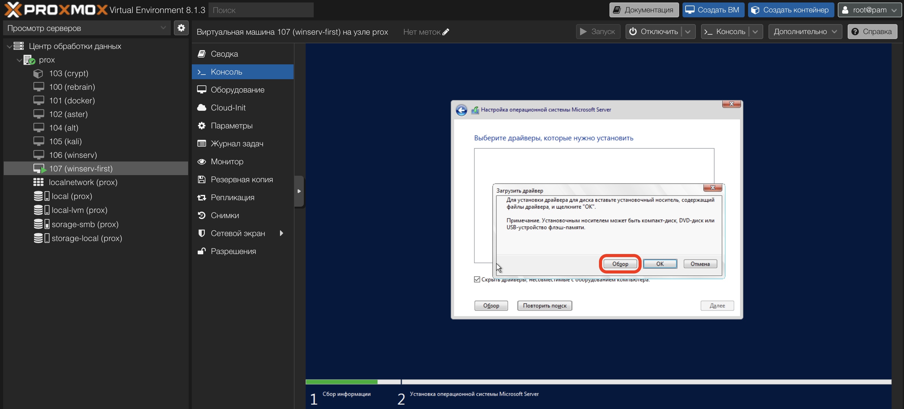 Установка Windows Server 2022 на виртуальную машину Proxmox